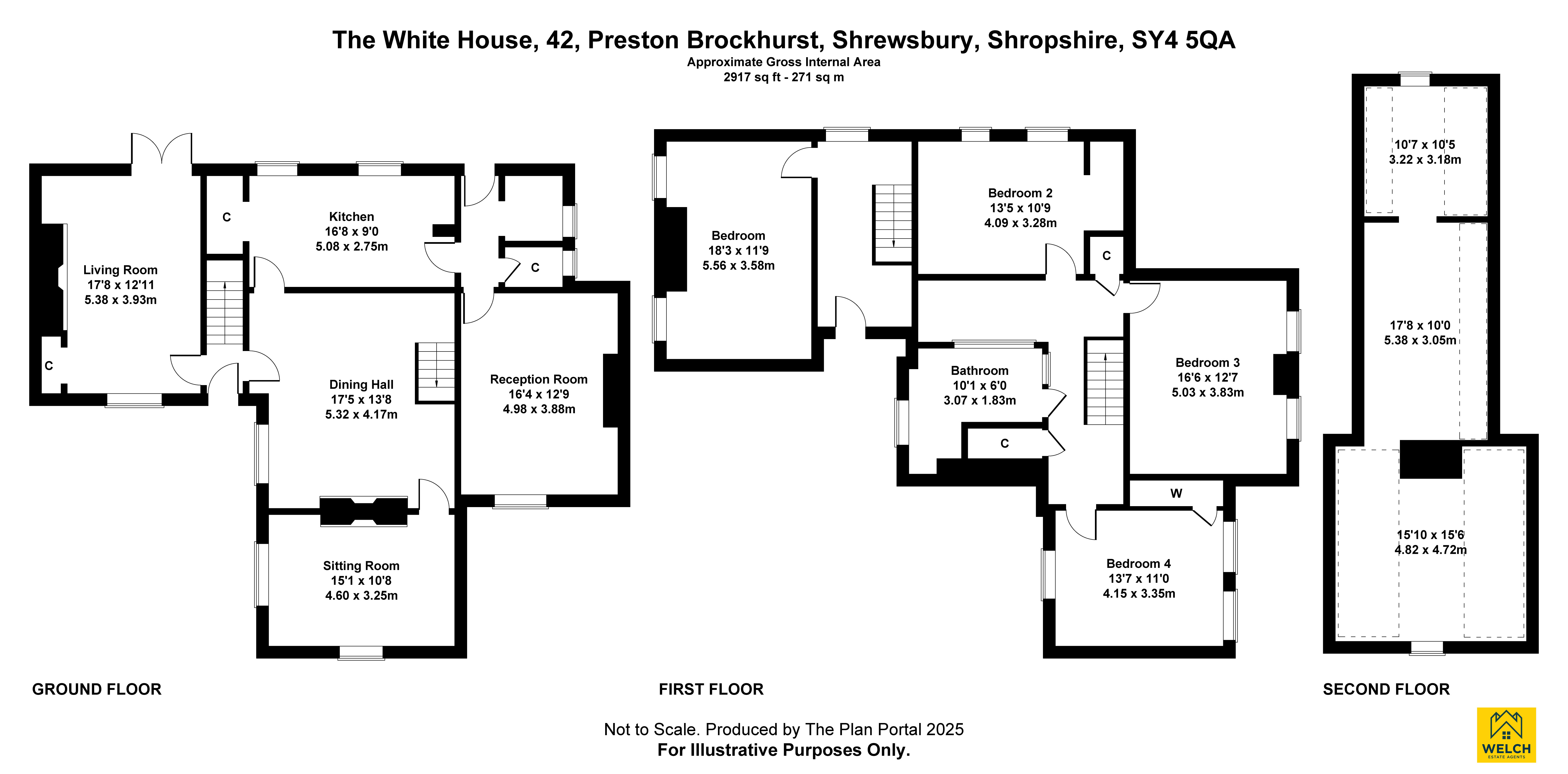 Two staircases rise to the first floor, where four spacious double bedrooms are served by a family bathroom. A further staircase leads to three attic rooms, providing flexible space ideal for conversion (subject to the necessary consents).